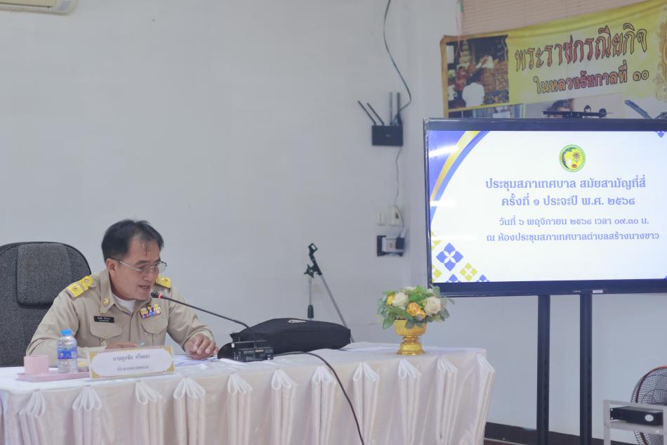 การประชุมสภาเทศบาล สมัยสามัญสมัยที่สี่ ครั้งที่ ๑ ประจำปี พ.ศ.๒๕๖๘ ณ ห้องประชุมสภาเทศบาลตำบลสร้างนางขาว
