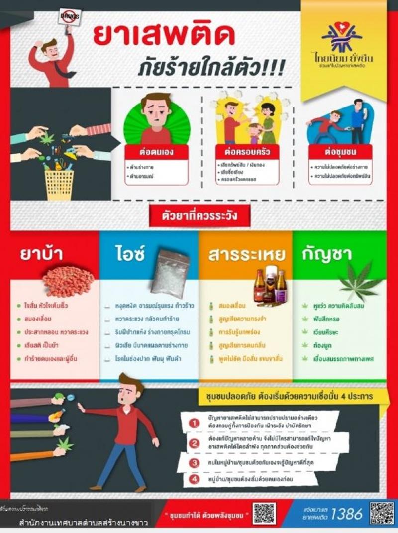 เทศบาลตำบลสร้างนางขาว เชิญชวนประชนตำบลสร้างนางขาว รณรงค์การงดใช้สารเสพติดในชุมชน ยาเสพติดภัยร้ายใกล้ตัว