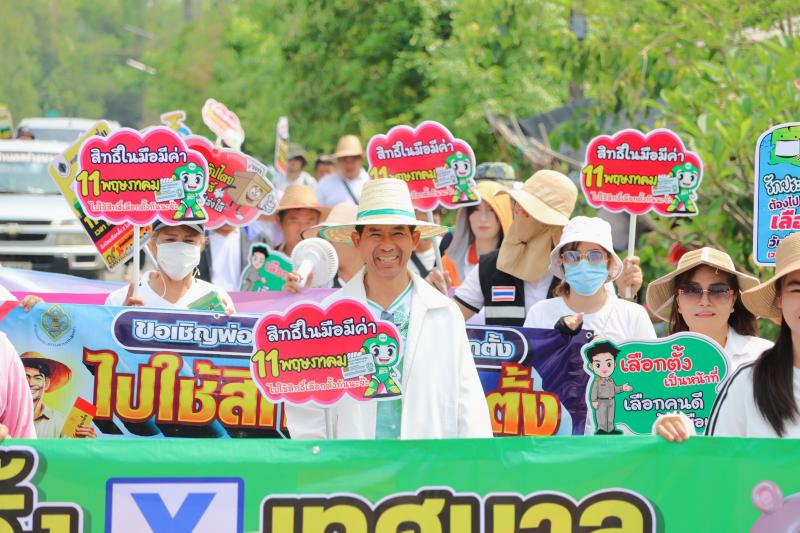 จัดกิจกรรมเดินรณรงค์โค้งสุดท้าย ประชาสัมพันธ์การเลือกตั้ง เชิญชวนให้ประชาชนออกมาใช้สิทธิ์เลือกตั้ง รณรงค์การไม่ซื้อสิทธิขายเสียง ส่งเสริมการเลือกตั้งสุจริต โปร่งใส