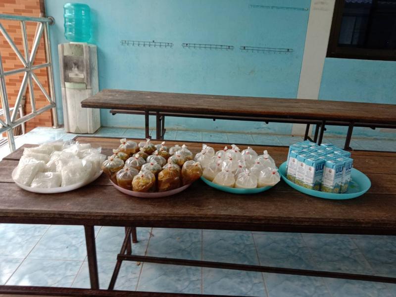 แจกอาหารกลางวัน และอาหารเสริม(นม) ช่วงปิดศูนย์พัฒนาเด็กเล็ก ในสังกัดเทศบาลตำบลสร้างนางขาว