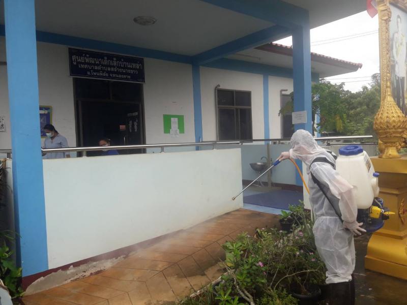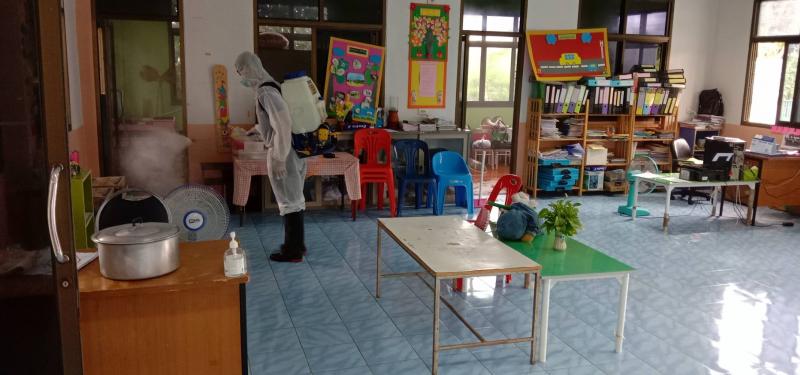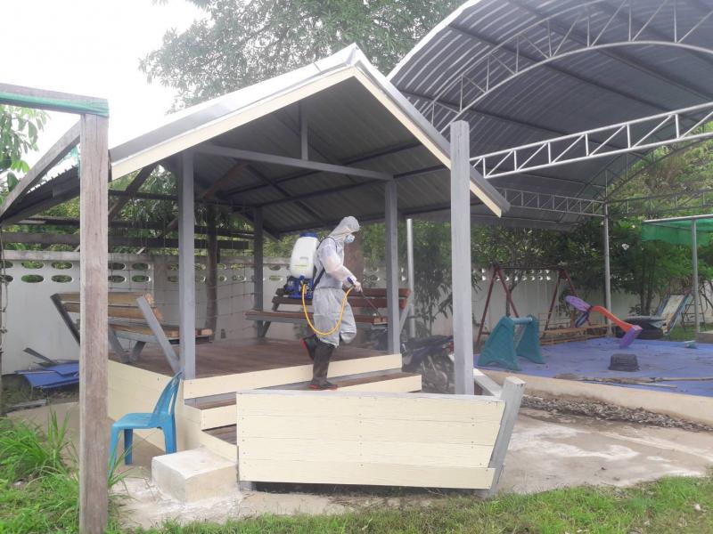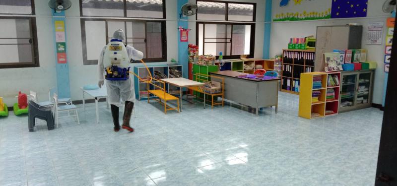 ฉีดพ่นยาฆ่าเชื้อไวรัสโคโรนา (COVID-19) ในศพด. สังกัด ทต.สร้างนางขาว ก่อนทำการเปิดการเรียนการสอน