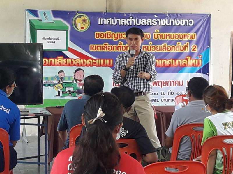 รายละเอียด : วันที่ 12 พฤษภาคม 2564 เวลา 08.30 น. พ.ต.ท.อดุลย์ ศรีทอง ประธานคณะกรรมการการเลือกตั้งประจำเทศบาลตำบลสร้างนางขาวพร้อมคณะกรรมการการเลือกตั้งและพนักงานเทศบาลผู้มีส่วนเกี่ยวข้องจัดโครงการประชาสัมพันธ์การออกเสียงลงคะแนนใหม่ เขตเลือกตั้งที่ 2 หน่วยเลือกตั้งที่ 2 บ้านหนองแคน เพื่อให้การประชาสัมพันธ์การเลือกตั้งเป็นไปอย่างทั่วถึง แพร่หลาย และมีประสิทธิภาพประชาชนไปใช้สิทธิเลือกตั้งมากที่สุด และมีบัตรเสียน้อยที่สุด ในการออกเสียงลงคะแนนใหม่สมาชิกสภาเทศบาลตำบลสร้างนางขาว ในวันอาทิตย์ที่ 16 พฤษภาคม 2564 จึงได้ออกประชาสัมพันธ์ในการเลือกตั้งสมาชิกสภาเทศบาล เพื่อเป็นแนวทางปฏิบัติต่อไป