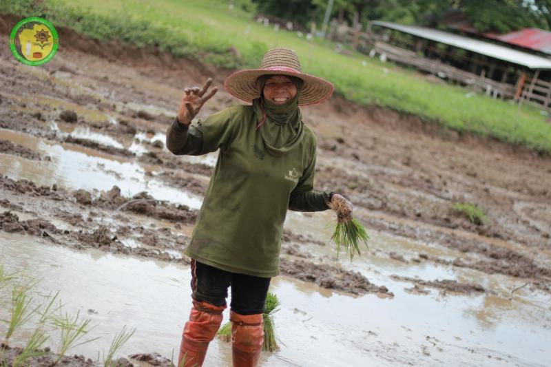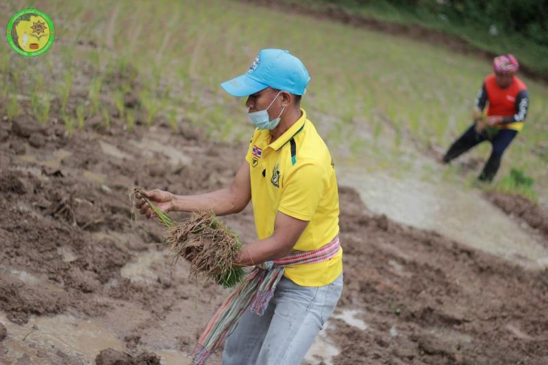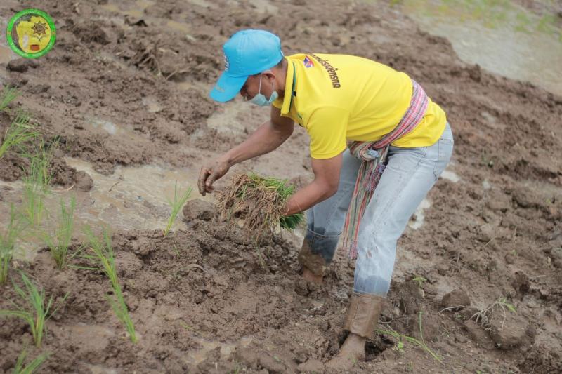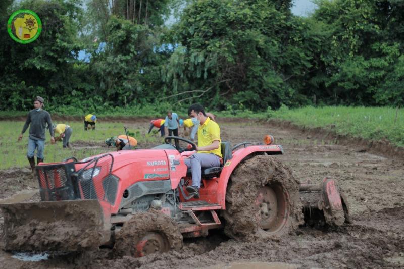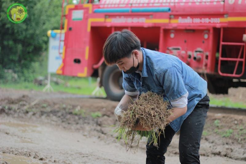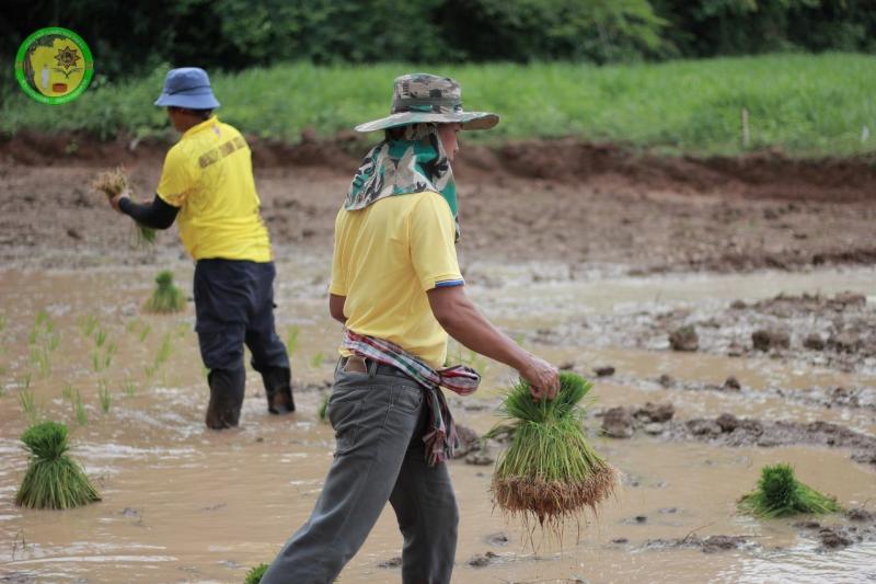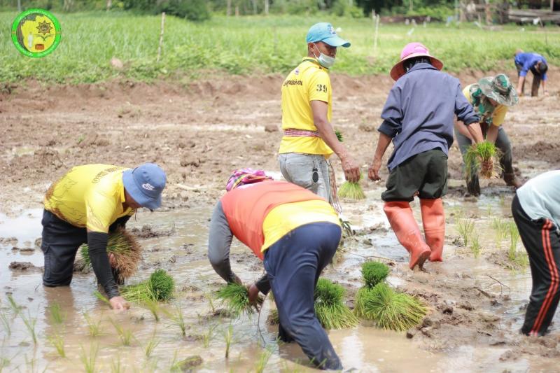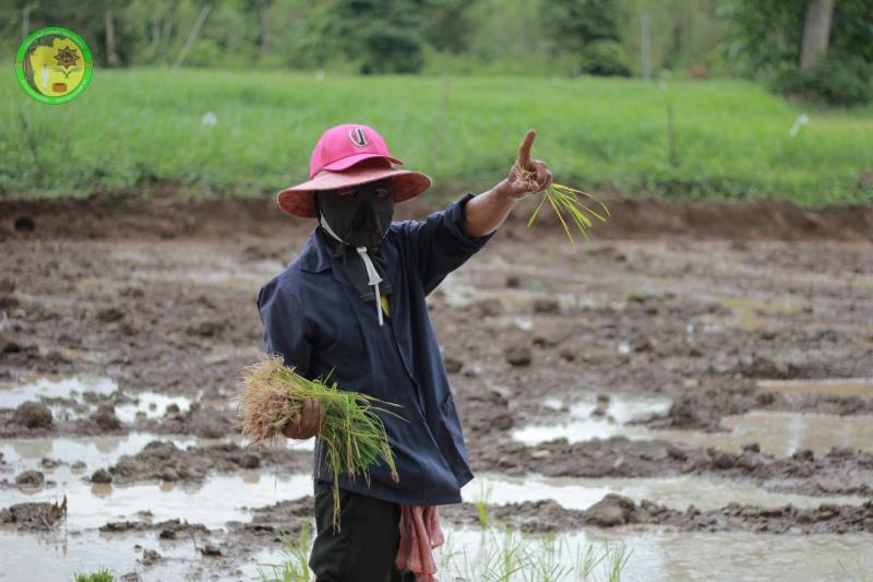 นำพนักงานเทศบาลและพนักงานจ้างดำเนินการทำนาปลูกข้าว ณ แปลงไร่นาตัวอย่าง