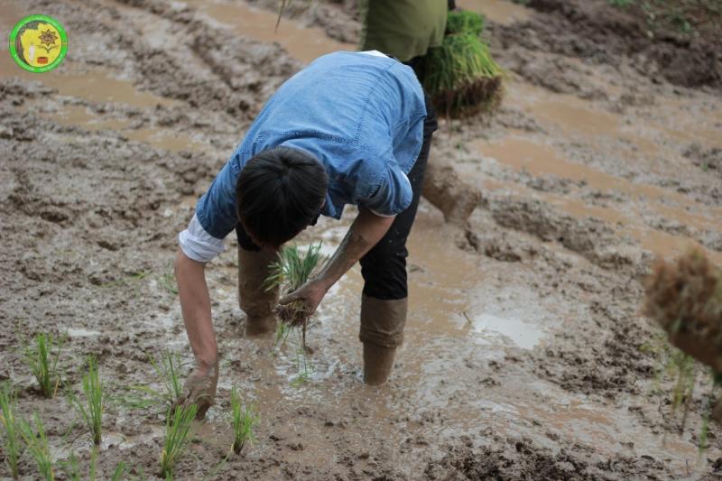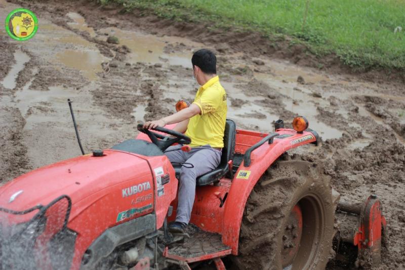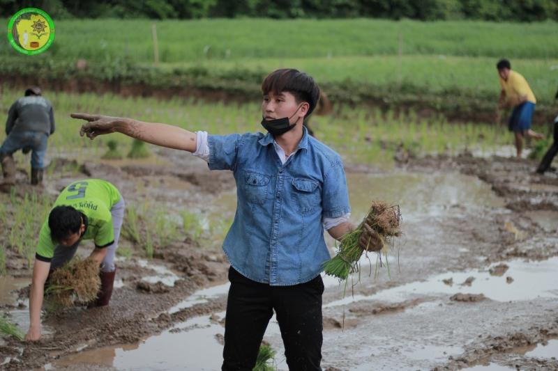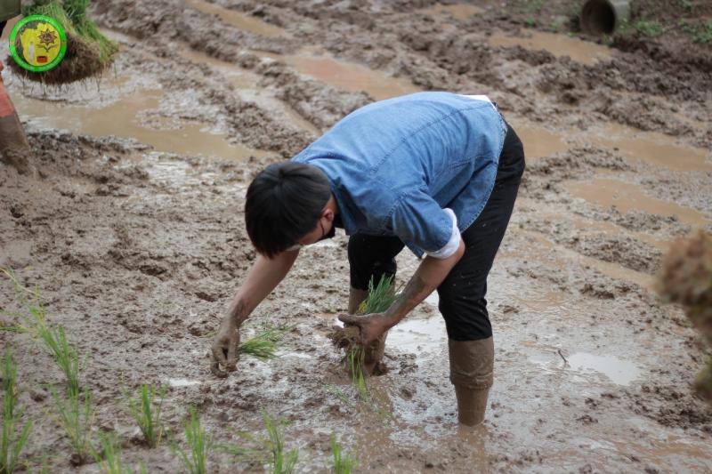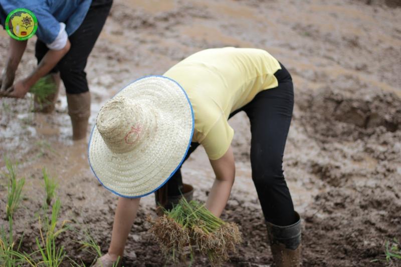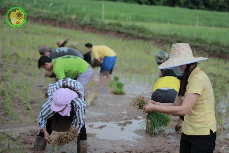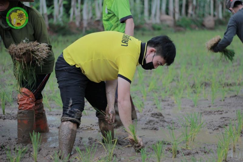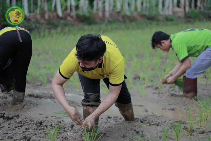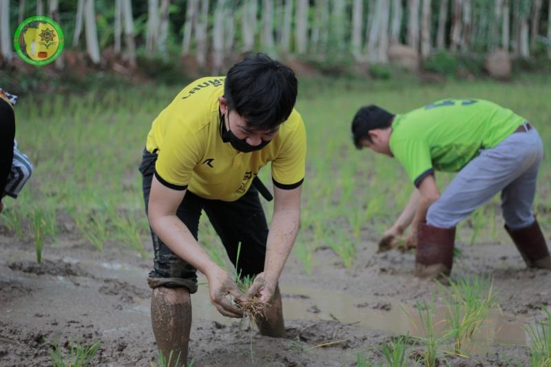 นำพนักงานเทศบาลและพนักงานจ้างดำเนินการทำนาปลูกข้าว ณ แปลงไร่นาตัวอย่าง