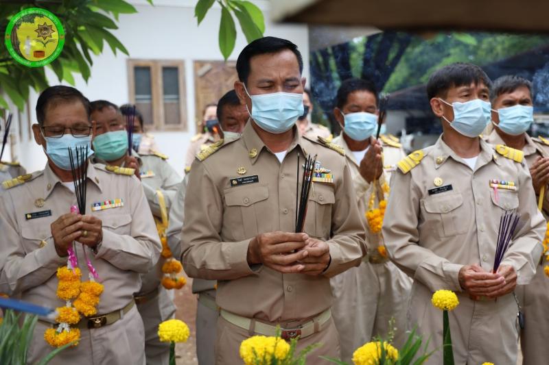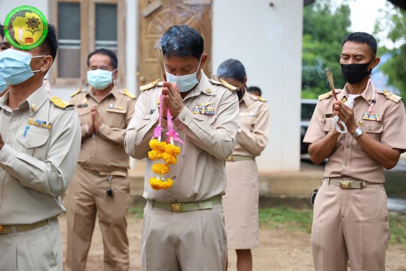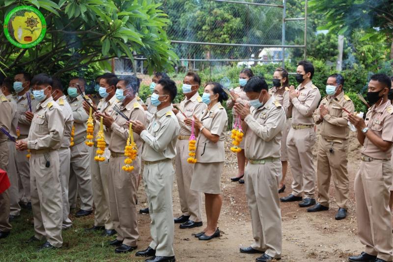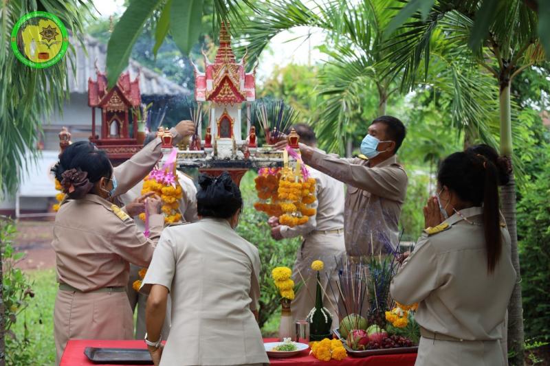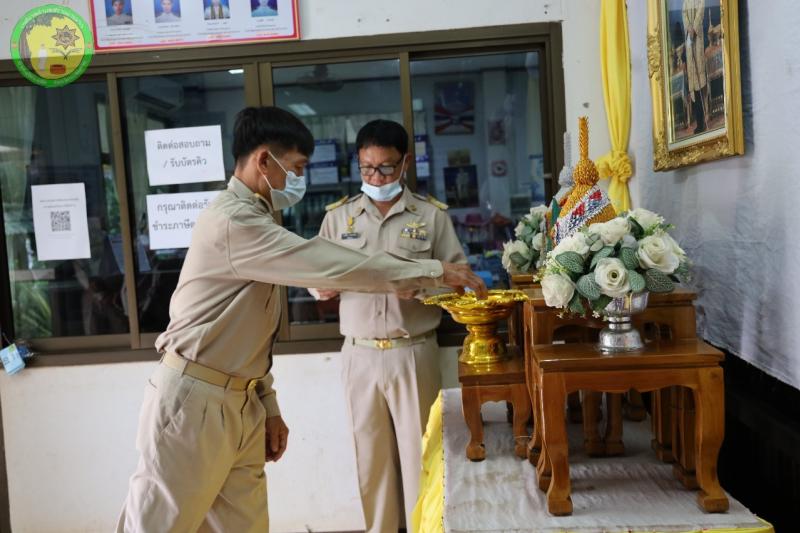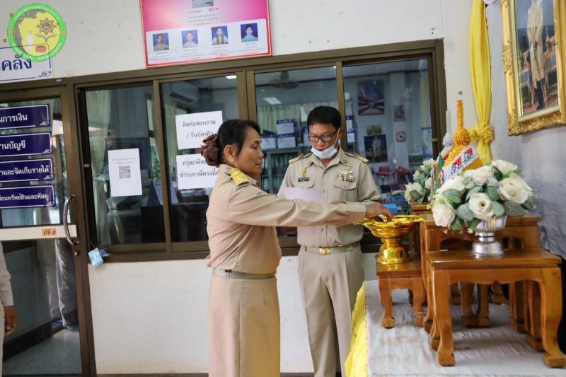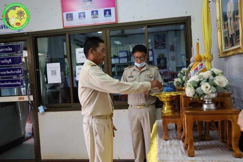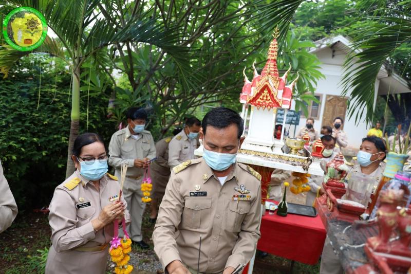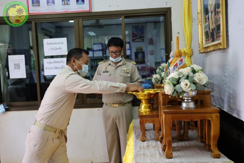 ได้ทำพิธีรับเเพรเเถบเครื่องราชย์และนำคณะไหว้สิ่งศักดิ์สิทธิ์่ประจำสำนักงาน
