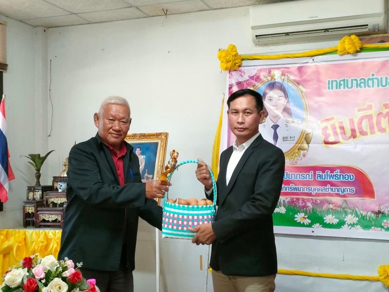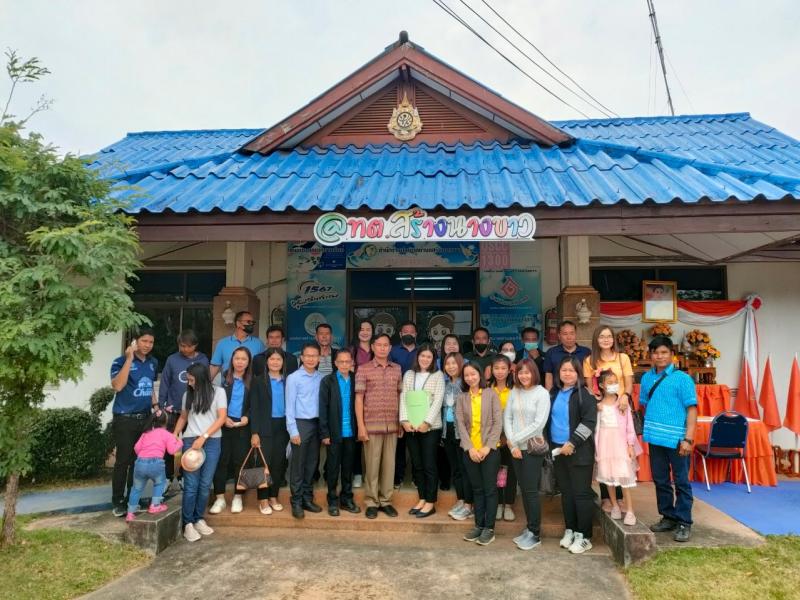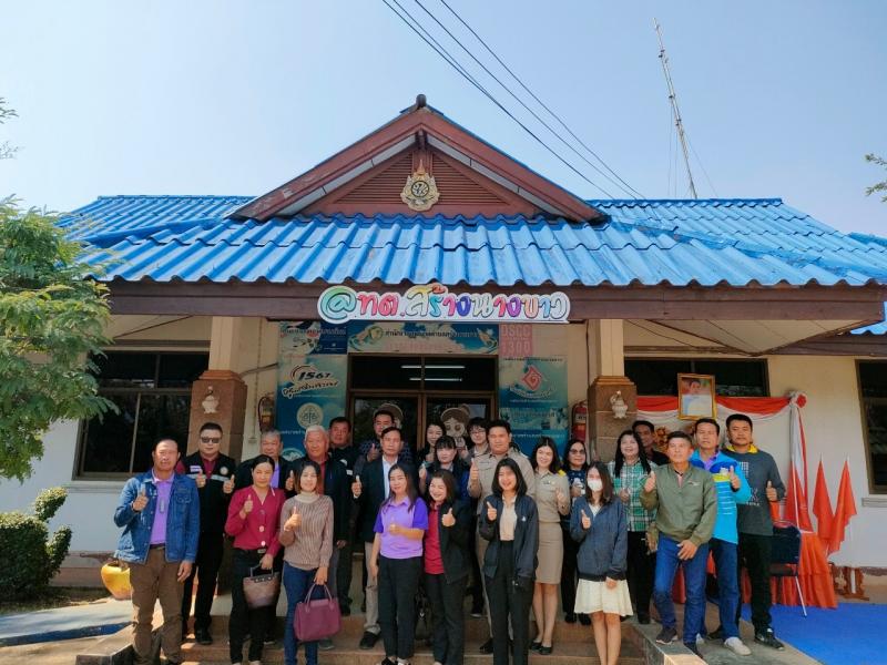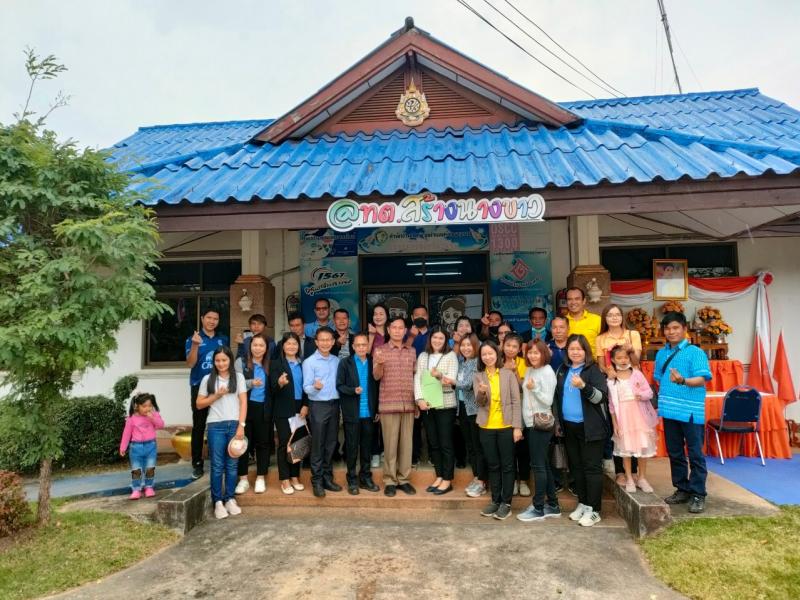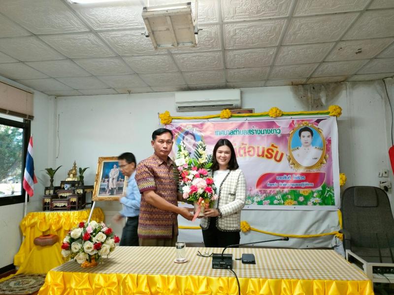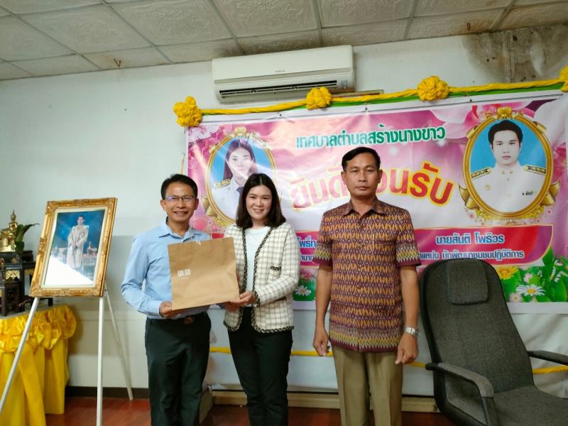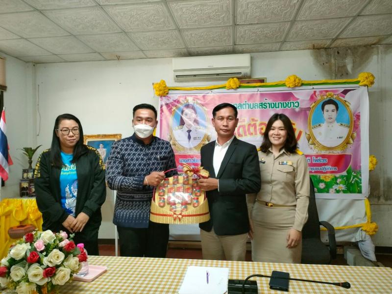 นายไหล่ จะหลาบหลวง นายกเทศมนตรีตำบลสร้างนางขาว กล่าวต้อนรับและแสดงความยินดี นายสันติ โพธิวร ตำเเหน่ง นักพัฒนาชุมชนปฏิบัติการ เเละ นางสาวปิยาภรณ์ ลิมโพธิ์ทอง ตำเเหน่งนักทรัยากรบุคคลชำนาญการ ที่เดินทางมาบรรจุ