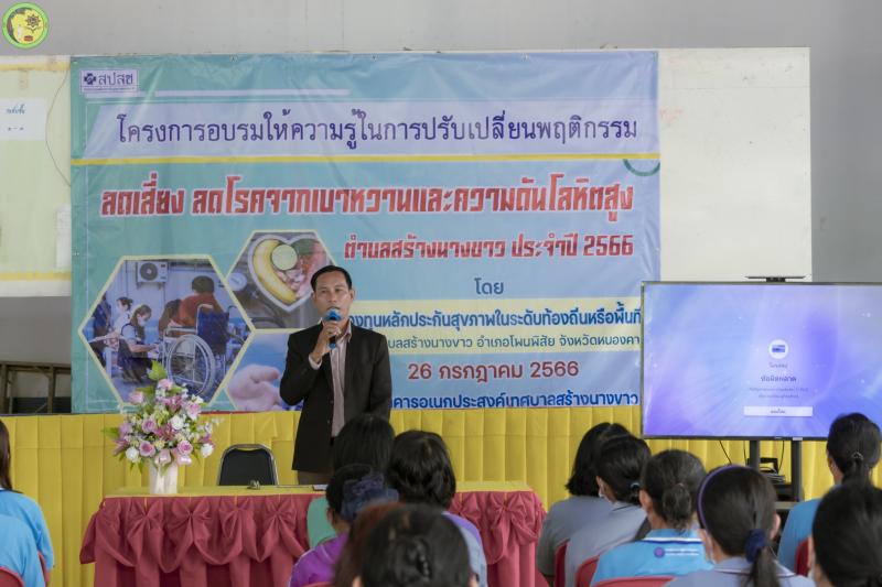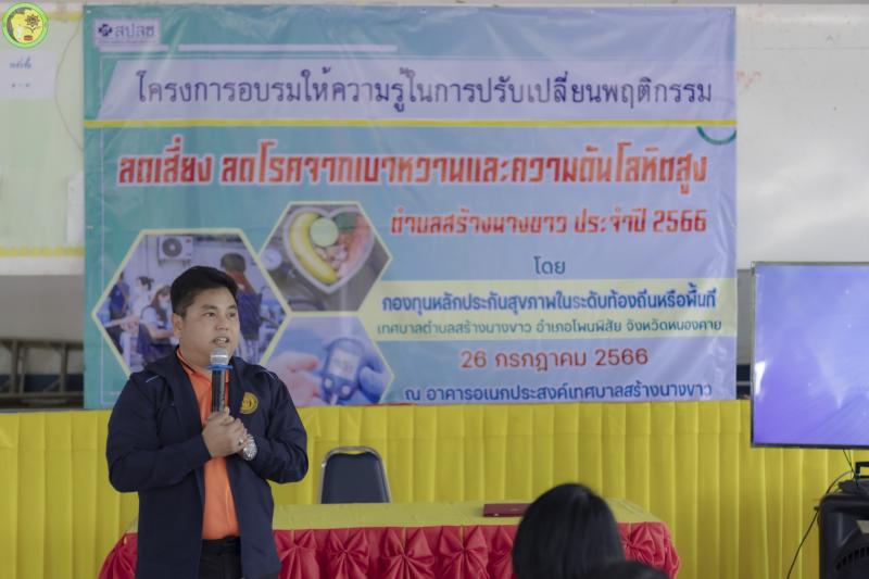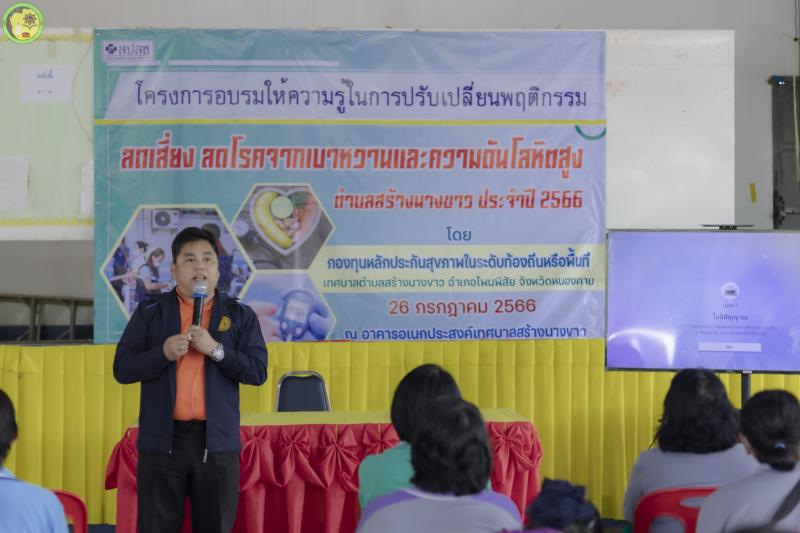 รายละเอียด : วัน พุธ ที่ ๒๖ เดือนกรกฏาคน พ.ศ ๒๕๖๖ นายไหล่ จะหลาบหลวง นายกเทศมนตรีตำบลสร้างนางขาว ได้เป็นประธานกล่าวเปิดโครงการอบรมให้ความรู้ในการเปลี่ยนพฤติกรรม
