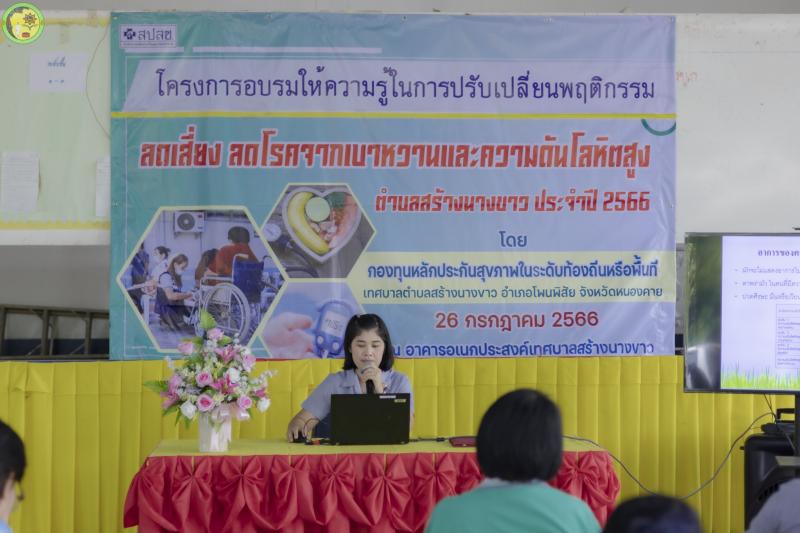 ลดเสี่ยง ลดโรคจากเบาหวานเละความดันโลหิตสูง ตำบลสร้างนางขาว ประจำปี ๒๕๖๖ โดยกองทุนหลักประกันสุขภาพในระดับท้องถิ่นหรือพื้นที่ ในเทศบาลตำบลสร้างนางขาว