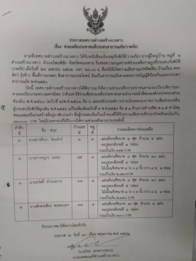 ทต.สร้างนางขาว ให้ความช่วยเหลือผู้ประสบวาตภัย (5 ภาพ)