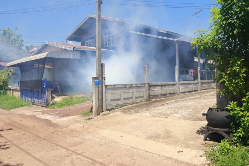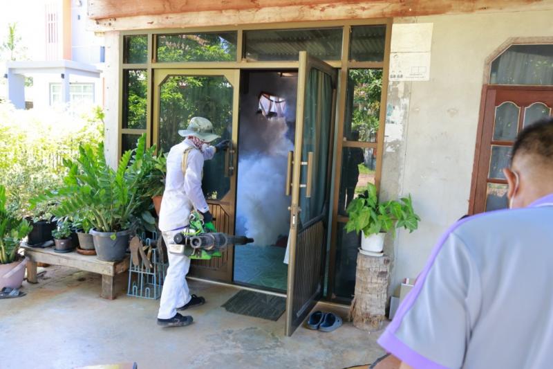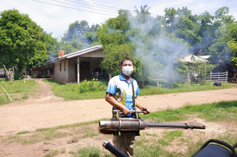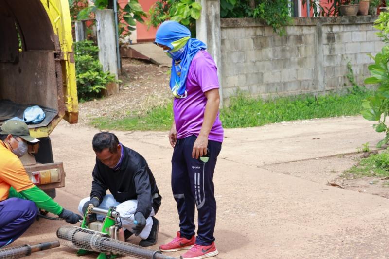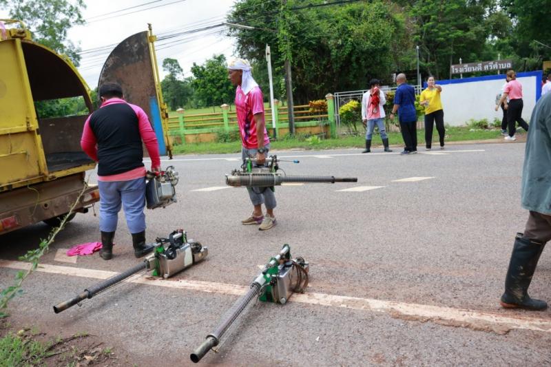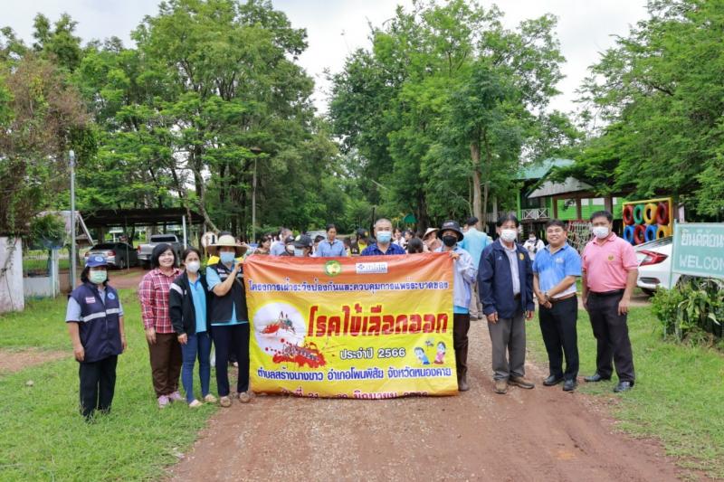 เเละหน่วยงานที่เกี่ยวข้อง ได้ลงพื้นที่ ฉีดพ่นหมอกควันพร้อมร่วมเดินรณรงค์ โครงการเฝ้าระวังป้องกันเเละควบคุมการเเพร่ระบาดของ โรคไข้เลือดออกประจำปี ๒๕๖๖