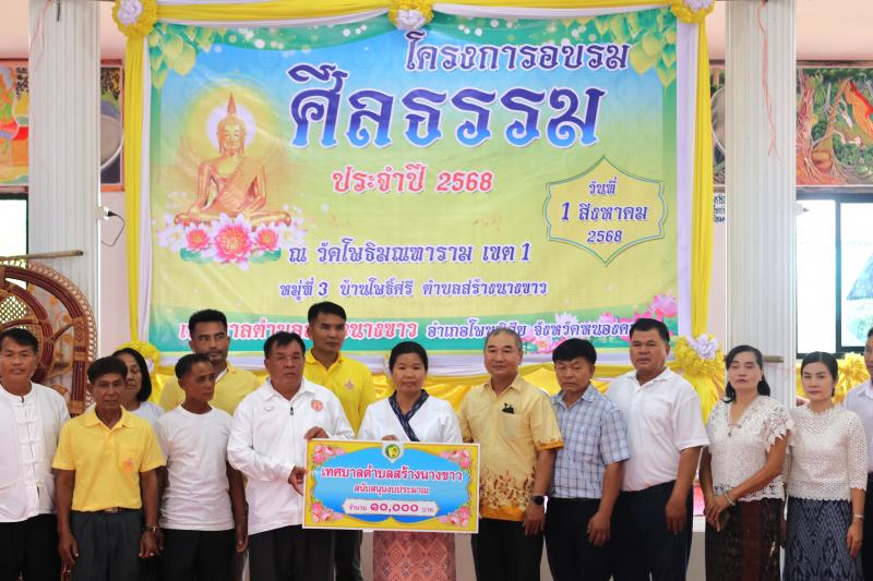 นายกเทศมนตรีตำบลสร้างนางขาว รวมกับผู้บริหาร สมาชิก กำนัน/ผู้ใหญ่บ้าน ข้าราชการ พนักงานเทศบาล ส่วนราชการในพื้นที่ได้เข้าร่วมโครงการอบรมศีลธรรม ประจำปีงบประมาณ 2568 ณ วัดโพธิมณฑาราม หมู่ที่3 บ้านโพธิ์ศรี ตำบลสร้างนางขาว อำเภอโพนพิสัย จังหวัดหนองคาย