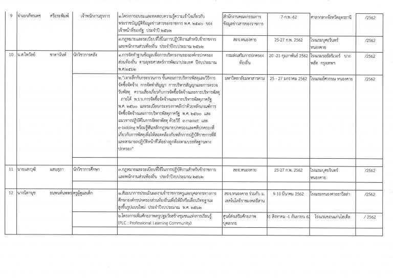 รายงานผลการพัฒนาบุคลากร 2562