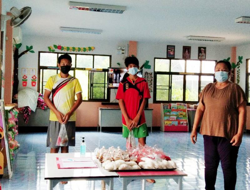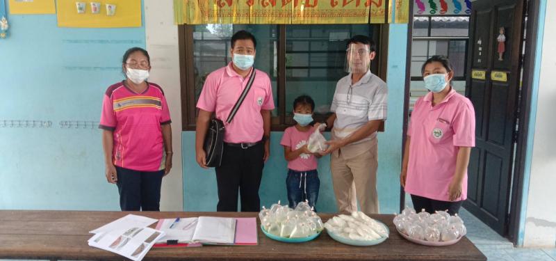 สุ่มตรวจอาหารกลางวัน ศพด.บ้านหาดสั่ง และแจกอาหารกลางวัน และอาหารเสริม(นม) ศพด.บ้านเหล่า ช่วงปิดศูนย์พัฒนาเด็กเล็ก ในสังกัดเทศบาลตำบลสร้างนางขาว