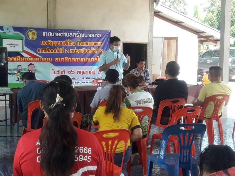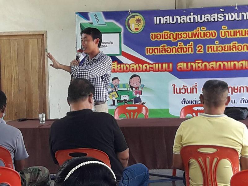 รายละเอียด : วันที่ 12 พฤษภาคม 2564 เวลา 08.30 น. พ.ต.ท.อดุลย์ ศรีทอง ประธานคณะกรรมการการเลือกตั้งประจำเทศบาลตำบลสร้างนางขาวพร้อมคณะกรรมการการเลือกตั้งและพนักงานเทศบาลผู้มีส่วนเกี่ยวข้องจัดโครงการประชาสัมพันธ์การออกเสียงลงคะแนนใหม่ เขตเลือกตั้งที่ 2 หน่วยเลือกตั้งที่ 2 บ้านหนองแคน เพื่อให้การประชาสัมพันธ์การเลือกตั้งเป็นไปอย่างทั่วถึง แพร่หลาย และมีประสิทธิภาพประชาชนไปใช้สิทธิเลือกตั้งมากที่สุด และมีบัตรเสียน้อยที่สุด ในการออกเสียงลงคะแนนใหม่สมาชิกสภาเทศบาลตำบลสร้างนางขาว ในวันอาทิตย์ที่ 16 พฤษภาคม 2564 จึงได้ออกประชาสัมพันธ์ในการเลือกตั้งสมาชิกสภาเทศบาล เพื่อเป็นแนวทางปฏิบัติต่อไป