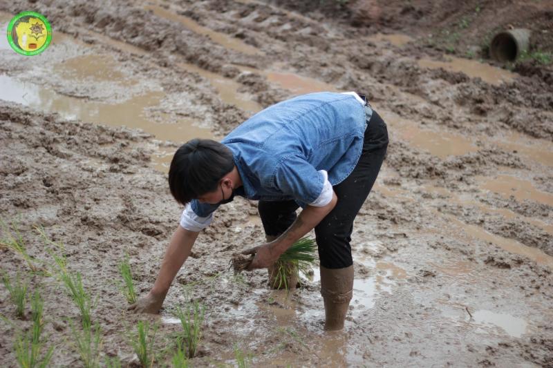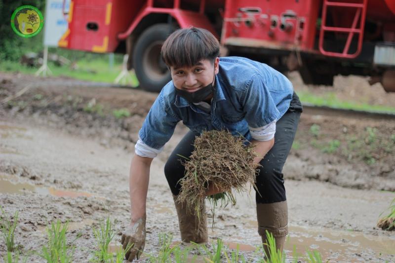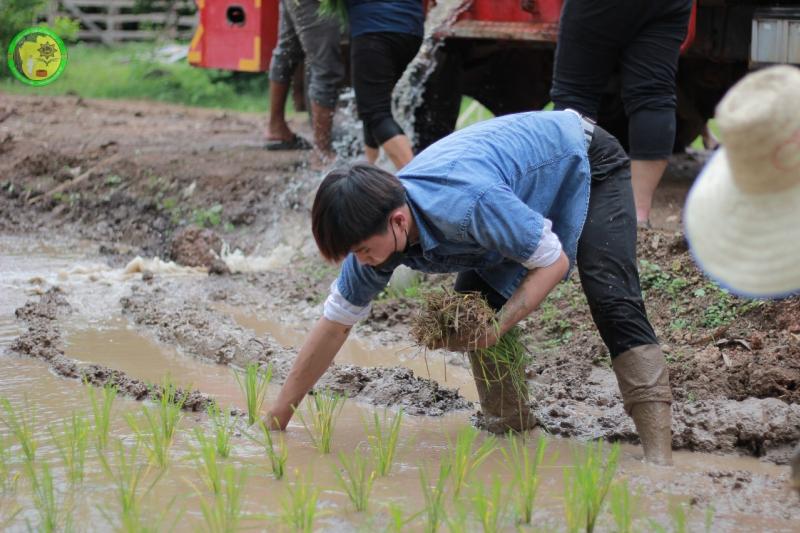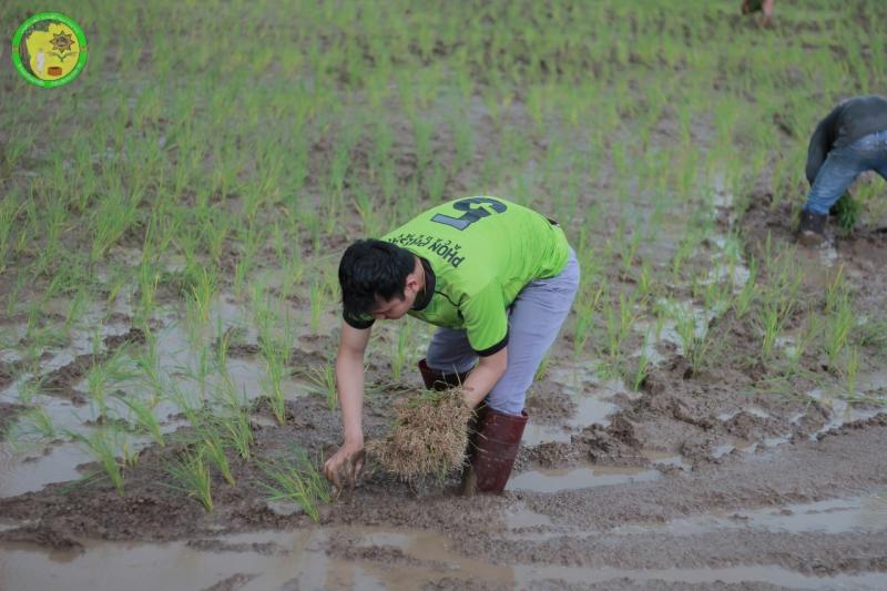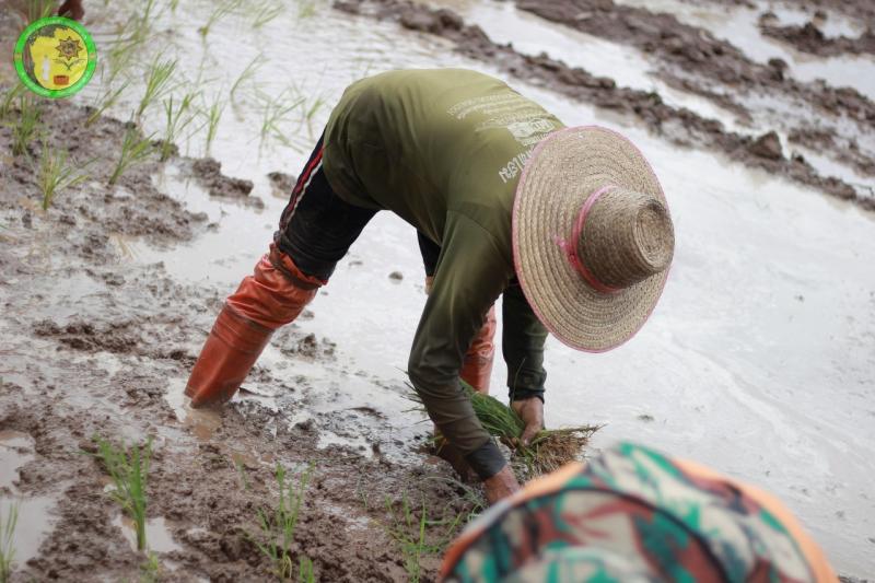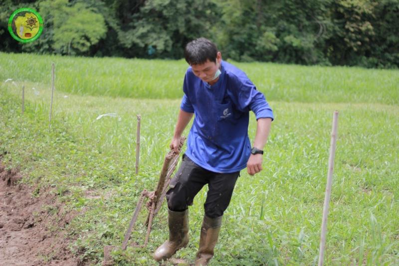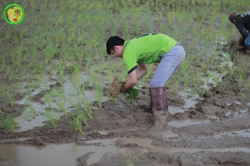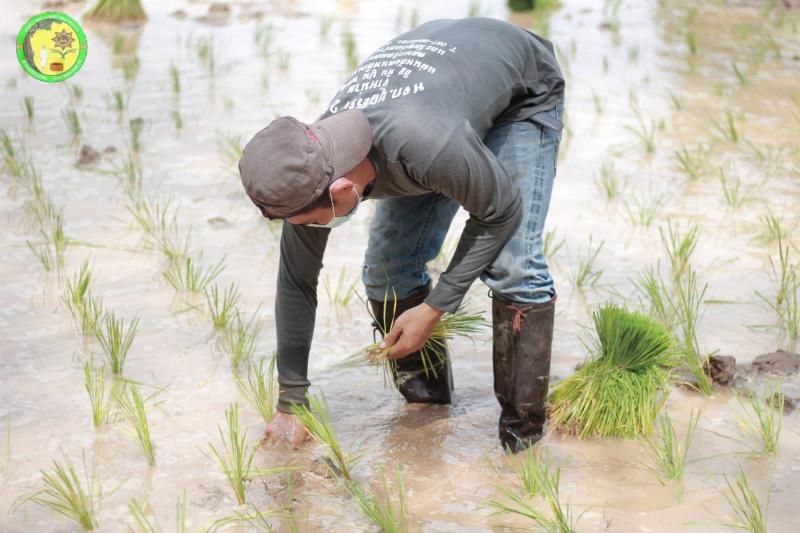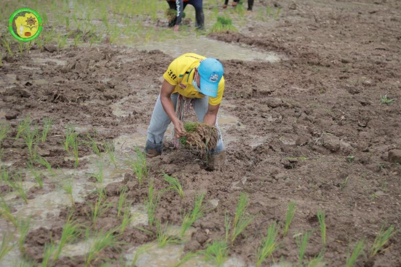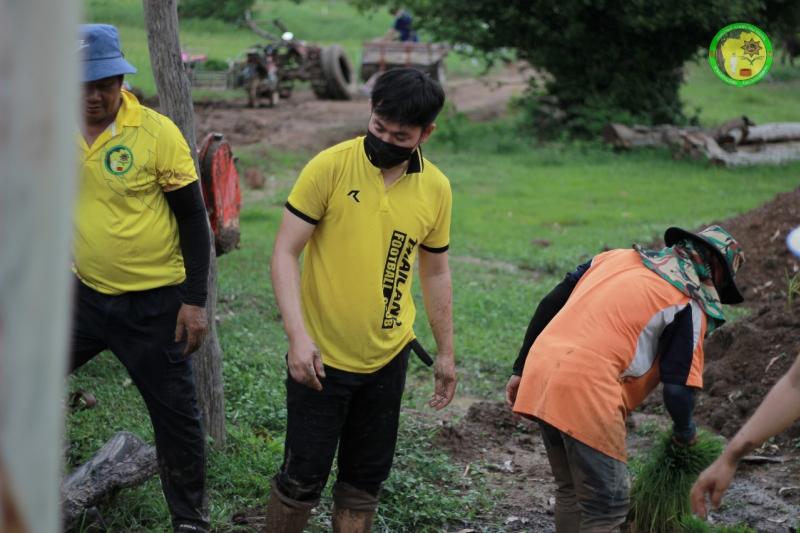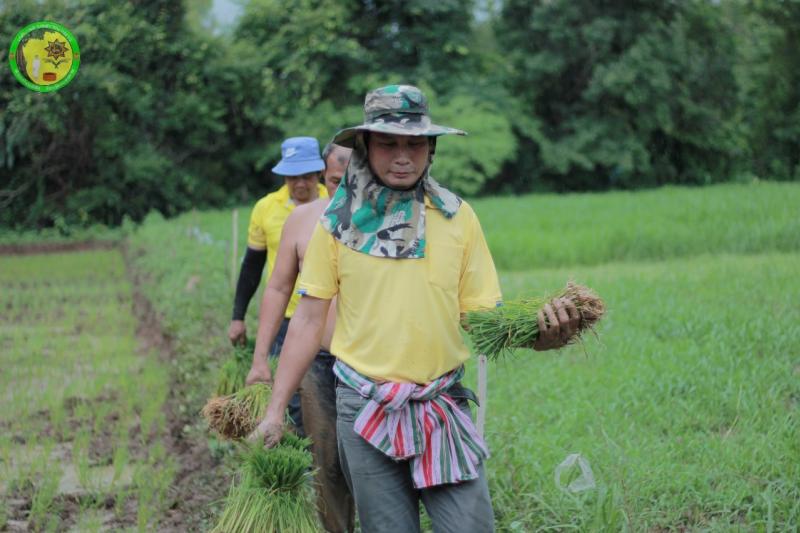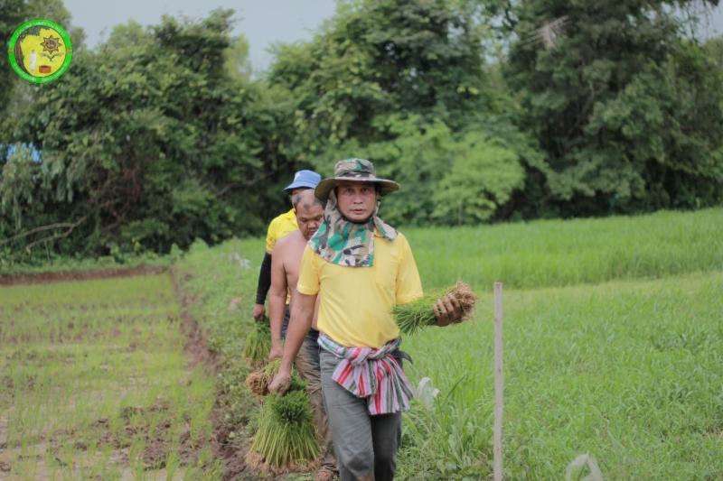 นำพนักงานเทศบาลและพนักงานจ้างดำเนินการทำนาปลูกข้าว ณ แปลงไร่นาตัวอย่าง