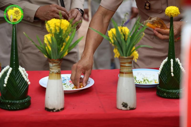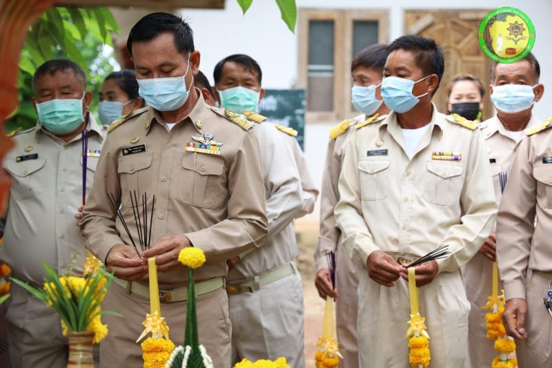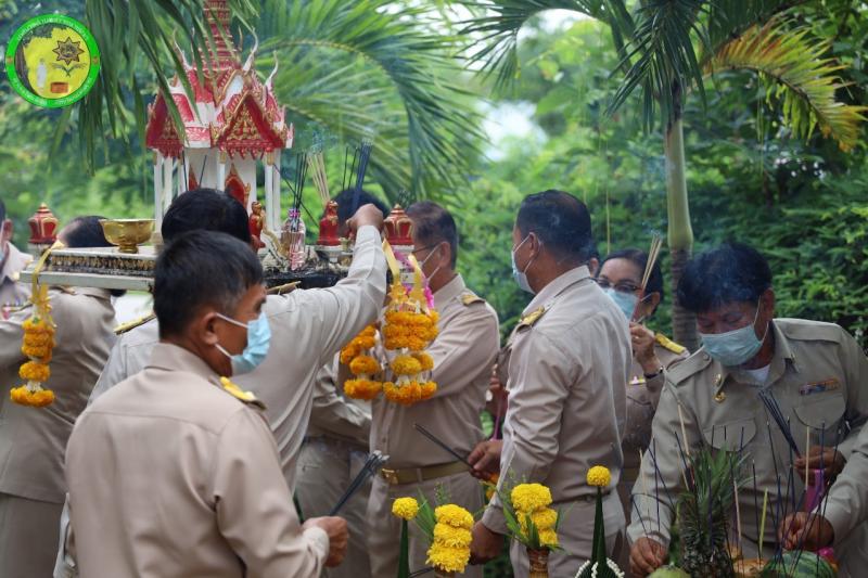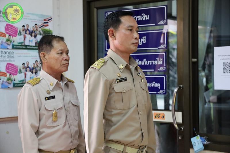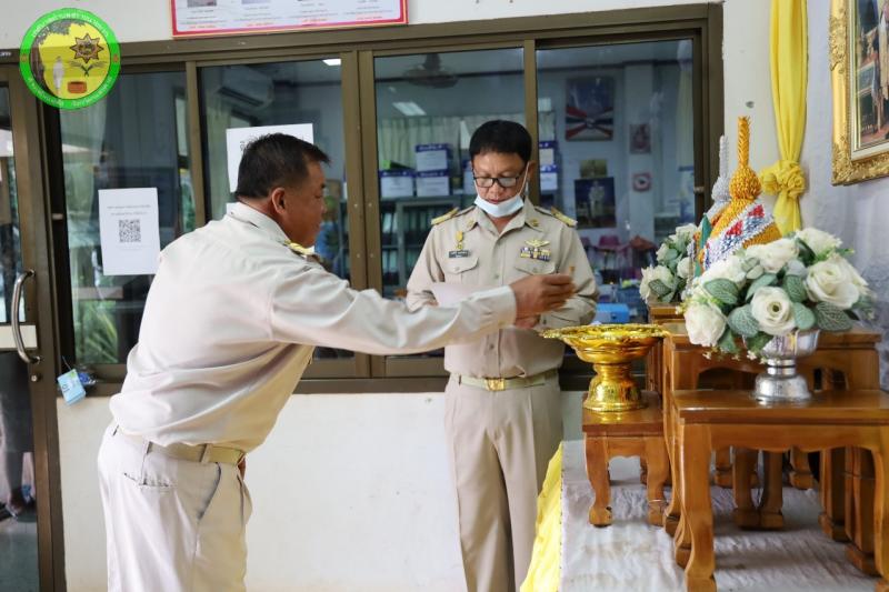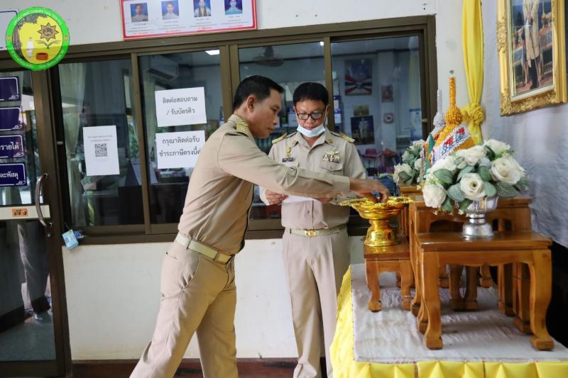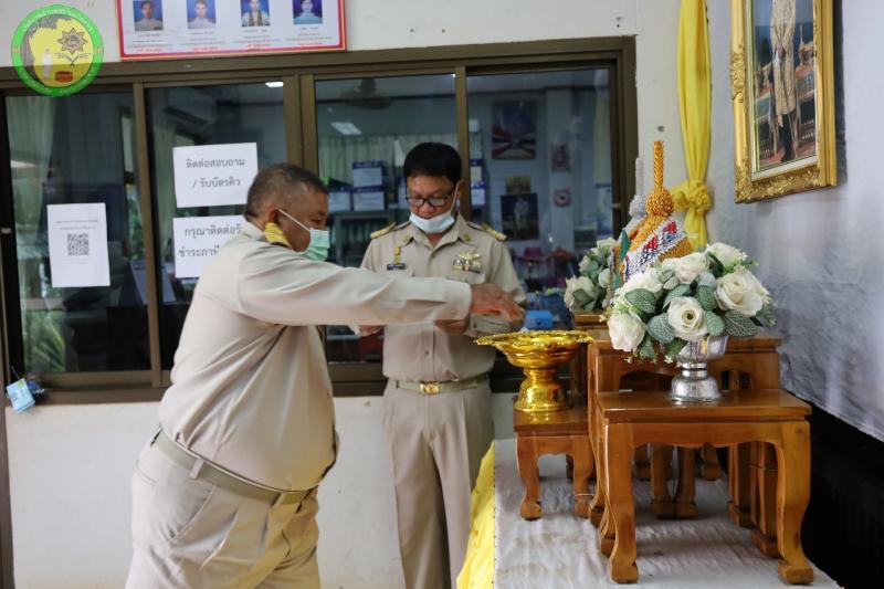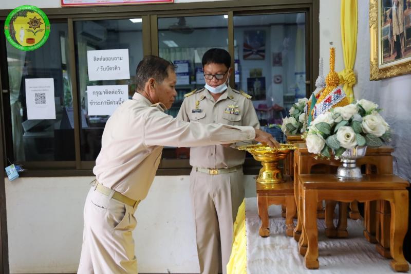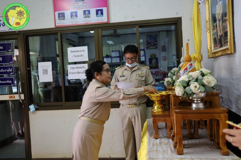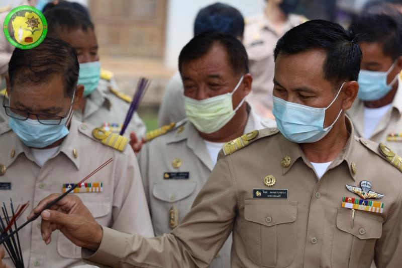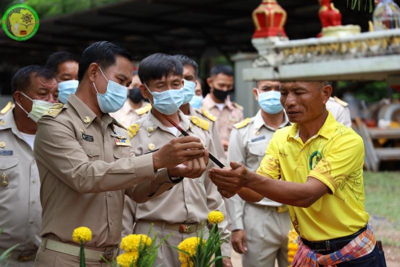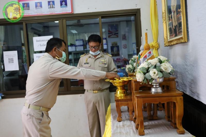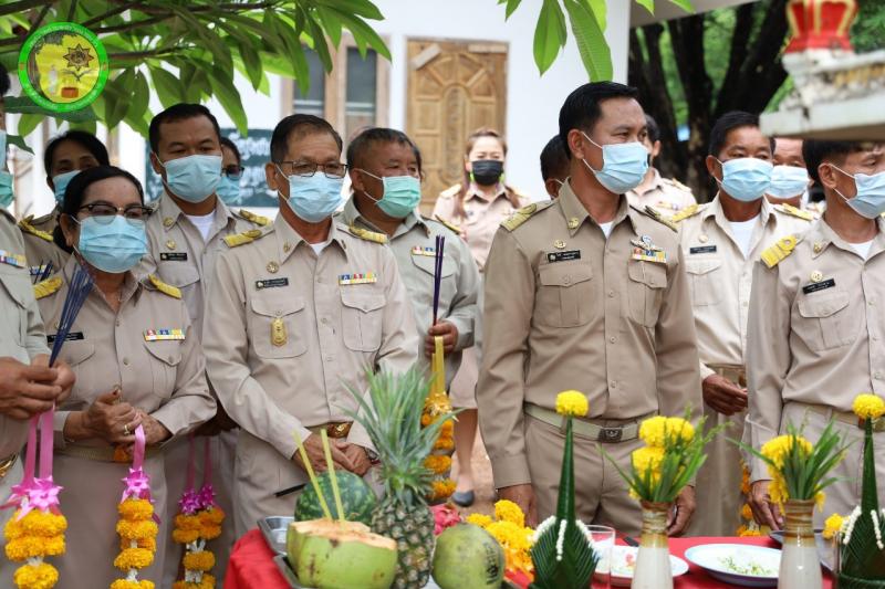 ได้ทำพิธีรับเเพรเเถบเครื่องราชย์และนำคณะไหว้สิ่งศักดิ์สิทธิ์่ประจำสำนักงาน
