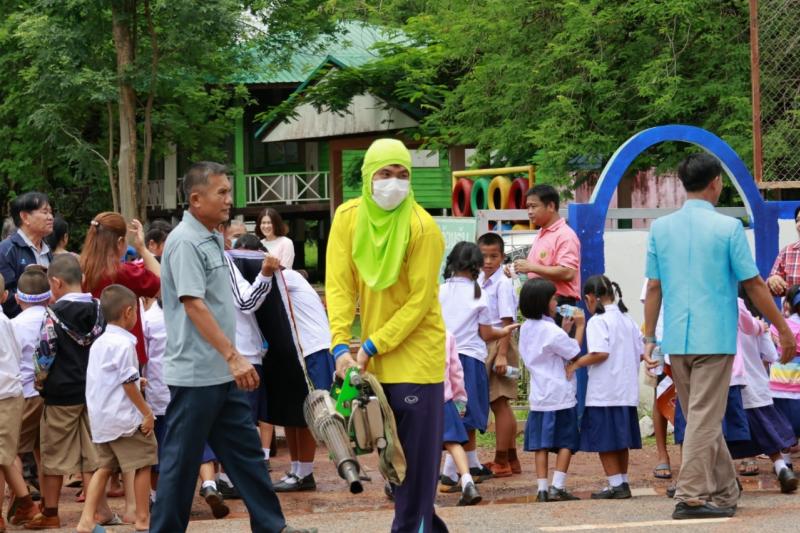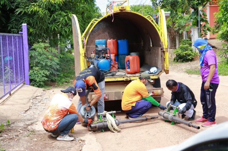 เเละหน่วยงานที่เกี่ยวข้อง ได้ลงพื้นที่ ฉีดพ่นหมอกควันพร้อมร่วมเดินรณรงค์ โครงการเฝ้าระวังป้องกันเเละควบคุมการเเพร่ระบาดของ โรคไข้เลือดออกประจำปี ๒๕๖๖