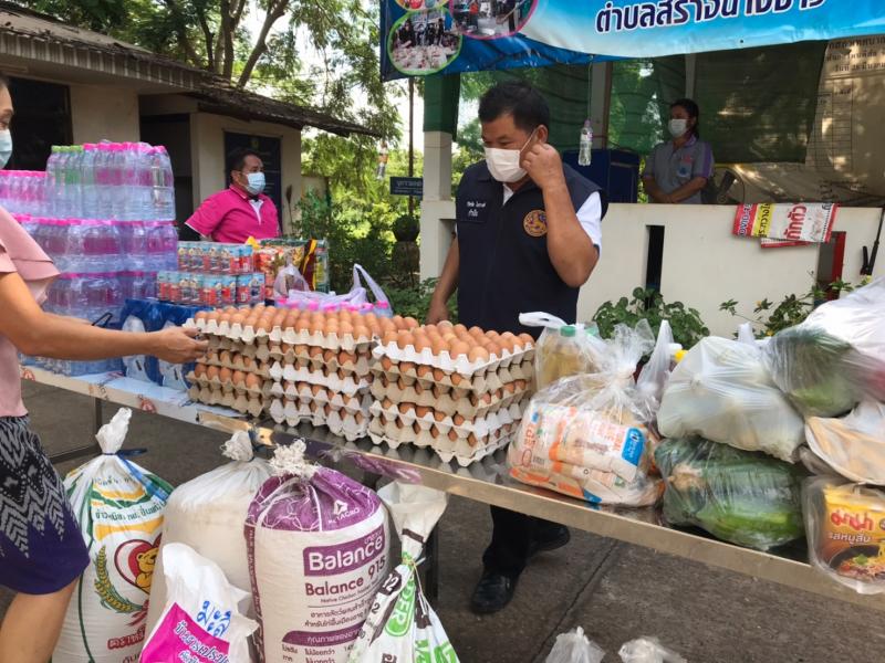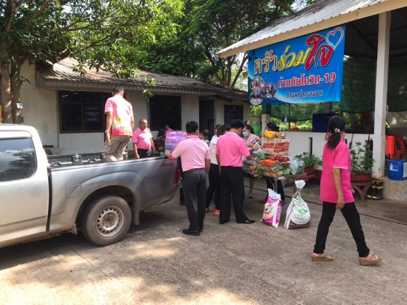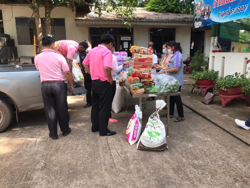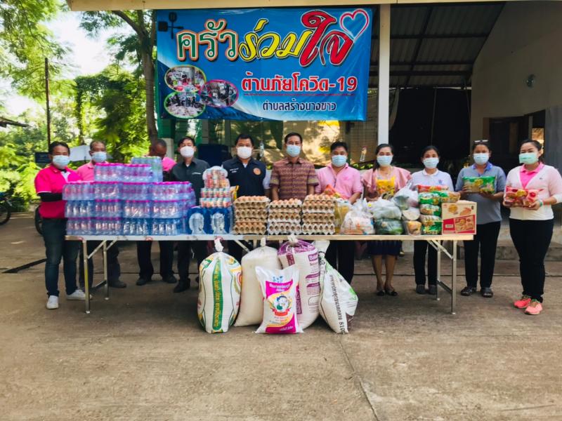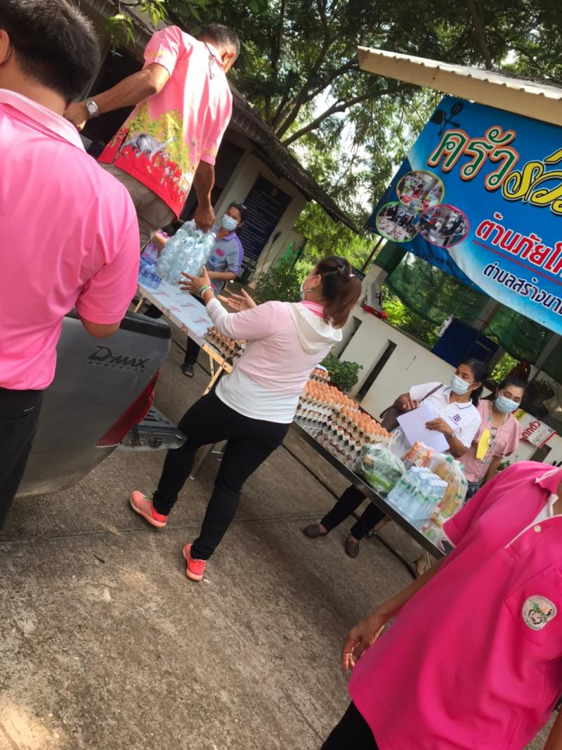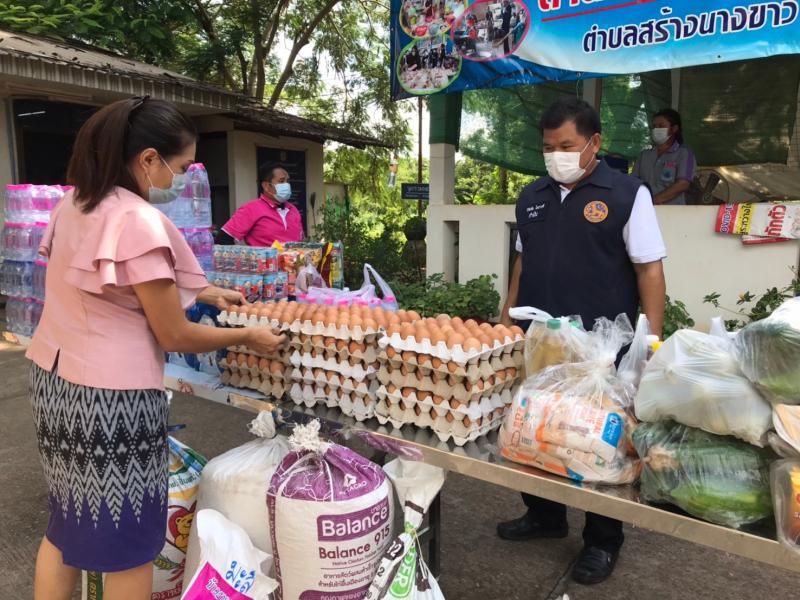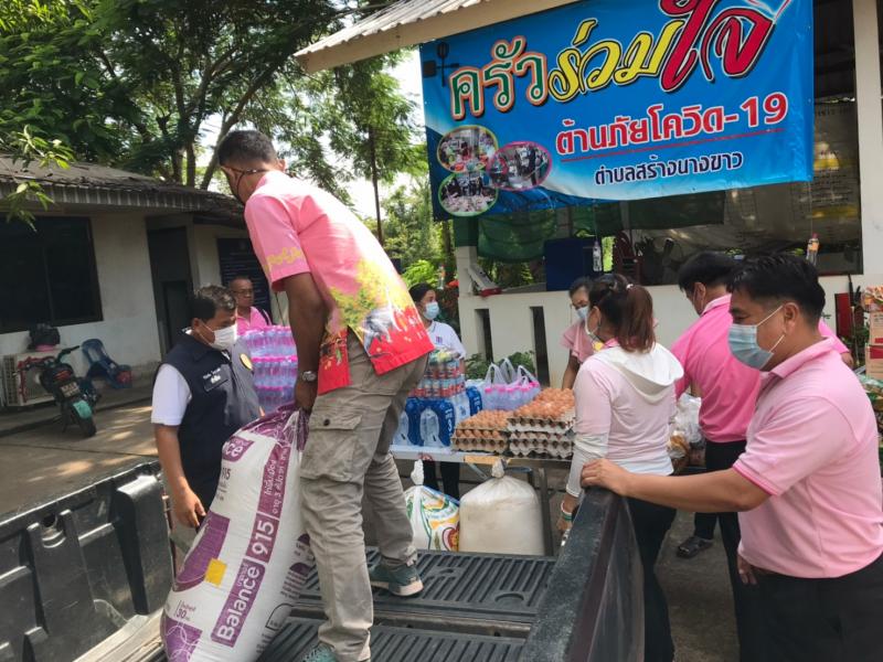 นายวิรัตชัย โยธวงศ์ กำนันตำบลสร้างนางขาว พร้อมทีมงานฝ่ายปกครอง เป็นตัวแทนมอบ ข้าวสาร อาหารแห้ง และอุปกรณ์ เครื่องครัวสิ่งจำเป็นต่างๆเพื่อใช้ในการประกอบอาหารให้กับผู้เข้ารับการกักตัว ณ ศูนย์พักคอยเทศบาลตำบลสร้างนางขาว