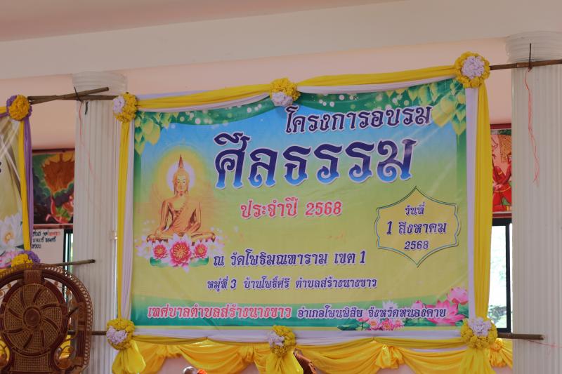 โครงการอบรมศีลธรรม ประจำปีงบประมาณ 2568 ณ วัดโพธิมณฑาราม หมู่ที่3 บ้านโพธิ์ศรี ตำบลสร้างนางขาว อำเภอโพนพิสัย จังหวัดหนองคาย